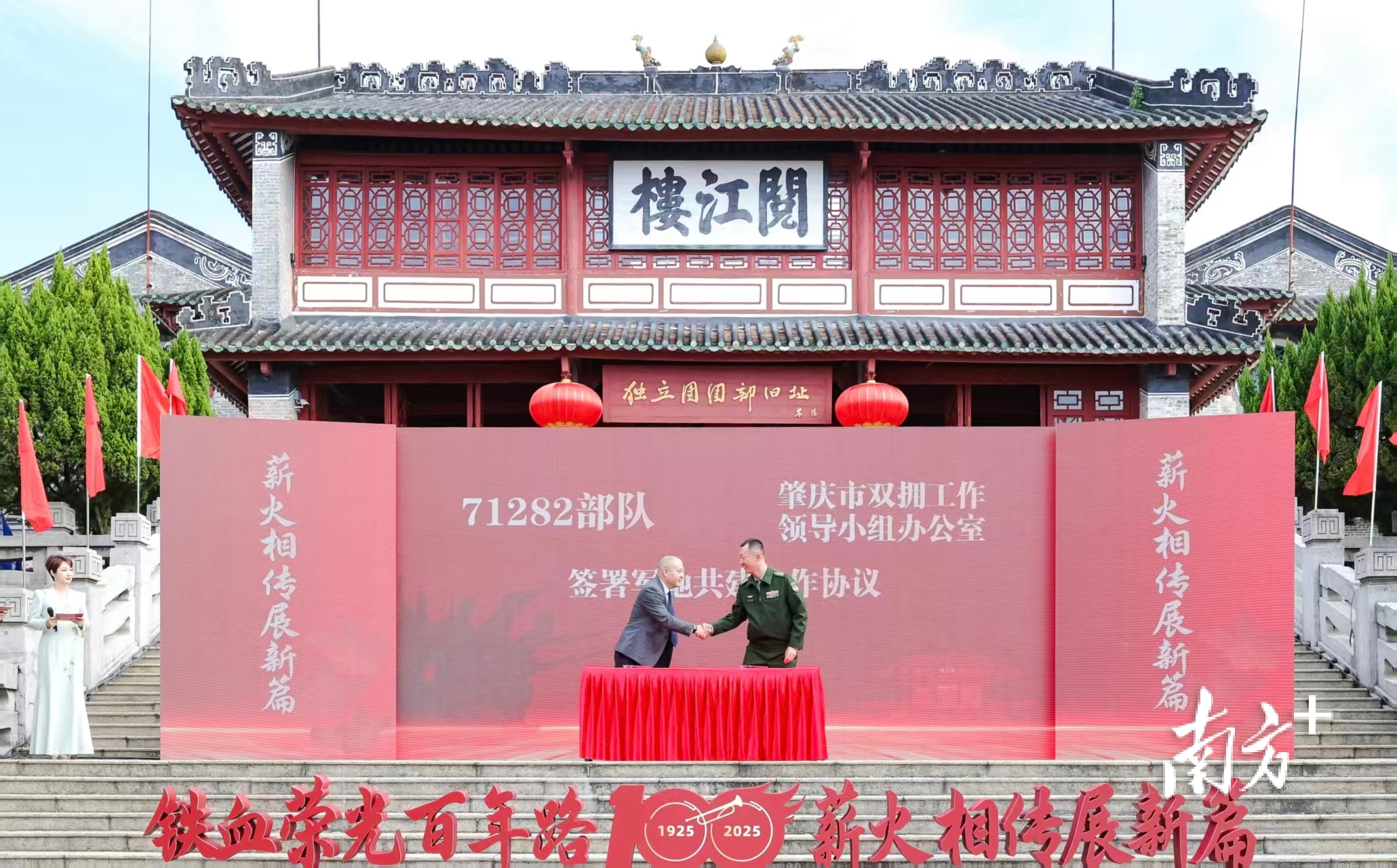 活动中,肇庆与71282部队、中国美术学院国潮艺术研究院签署共建协议,推动军地共建合作,携手打造红色文创基地。